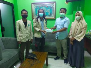 GRESIK | NUGres – Aliansi Mahasiswa Universitas Qomaruddin menyerahkan bantuan donasi hasil penggalangan dana ke Posko PCNU Gresik Peduli Semeru, Selasa (14/12). Donasi berupa uang tunai dengan total Rp 10.280.000 juta tersebut selanjutnya akan digunakan untuk membantu meringankan beban para korban erupsi semeru di Lumajang.