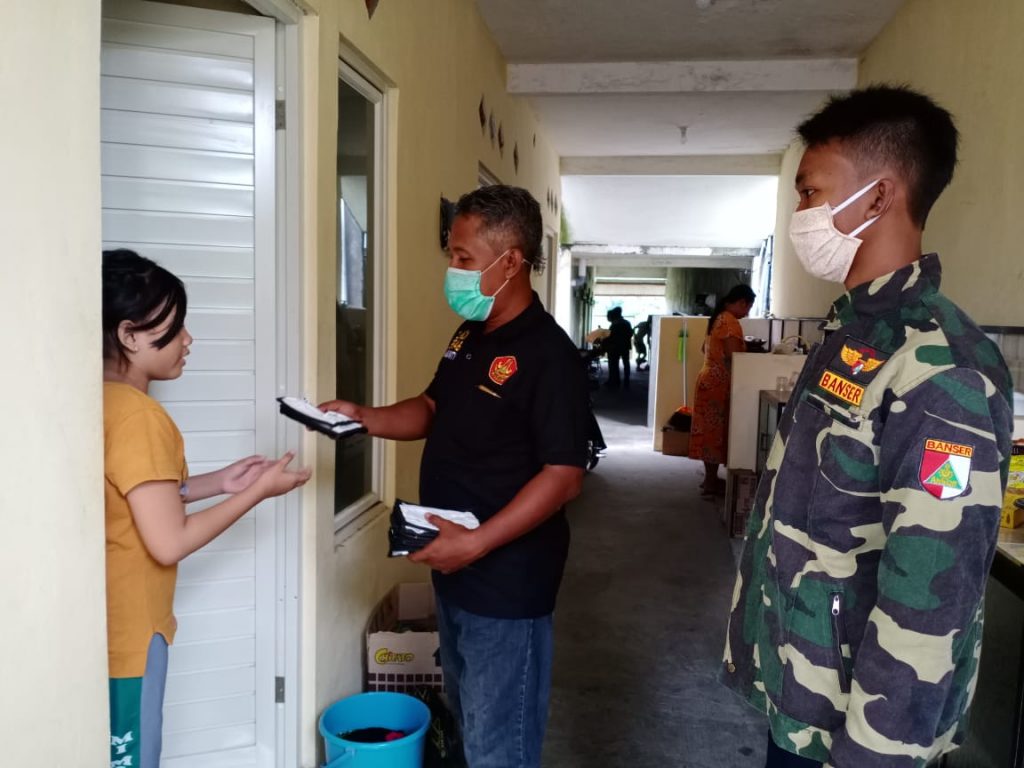 Pembagian masker tersebut dilakukan dengan cara door to door, berkeliling kampung dan didistribusikan juga di setiap pos penjagaan masing-masing Dusun.