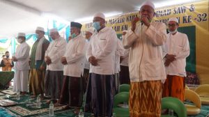GRESIK | NUGres – Pada momen Hari Santri Nasional 2020, Haul KH. Umar Burhan digelar meriah untuk pertama kalinya, setelah 32 tahun lalu beliau wafat. Acara haul yang dilaksanakan hari ini, Sabtu (24/10), bertempat di sepanjang jalan Nyai Ageng Arem-arem, Pekelingan, Gresik.