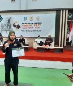 GRESIK | NUGres – Nor Khalimatus Sakdeya masih tidak menyangka bisa meraih juara tiga dalam Kejuaraan Daerah (Kejurda) Pencak Silat Jawa Timur 2021 di Jombang. Anak bungsu dari enam bersaudara itu mewakili Kabupaten Gresik di kategori Seni Tunggal Putri.