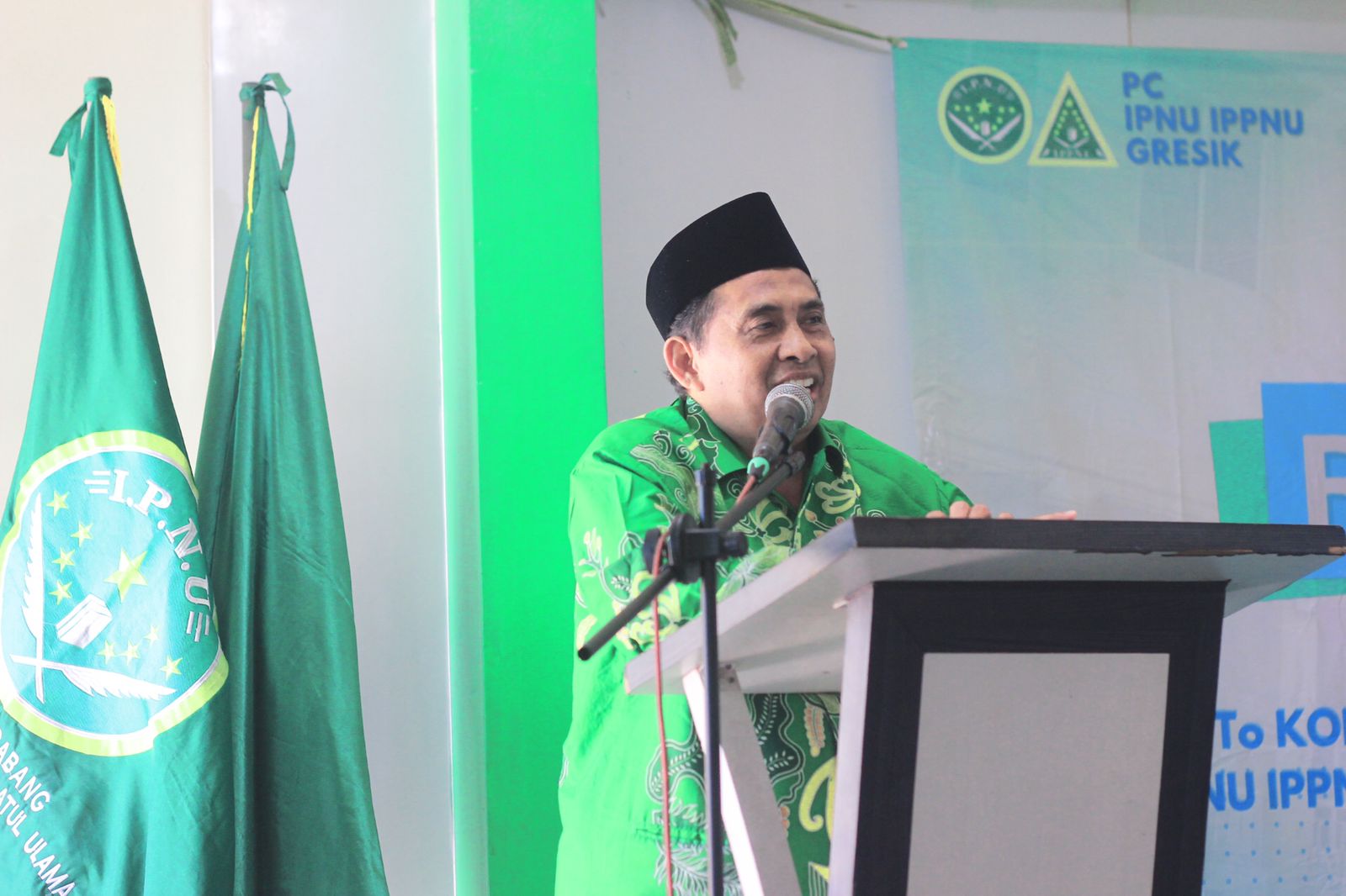 Sambutan Ketua Pimpinan Cabang IPNU Gresik, rekan Syifaul Mukminin. Foto: Tim dok. PC IPNU IPPNU Gresik/NUGres
