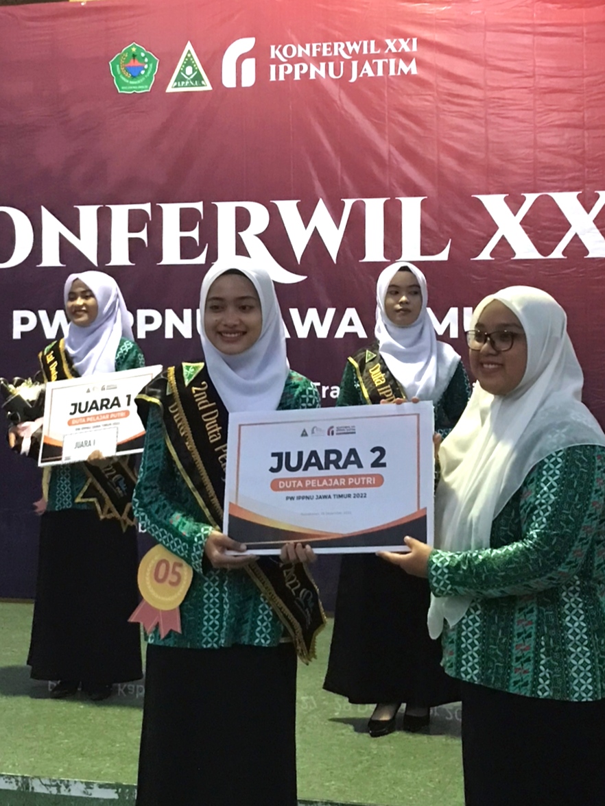 Shela berhasil meraih Juara 2 dalam kontestasi bergengsi Pemilihan Duta Pelajar Putri PW IPPNU Jawa Timur, Rabu (28/12/2022). Pelajar cantik dari Dusun Perengkulon Desa Melirang, Kecamatan Bungah Gresik ini sukses melaksanakan amanah yang dipercayakan PC IPPNU Gresik. Yaitu mengikuti ajang Pemilihan Duta Pelajar Putri Jawa Timur yang dirangkaikan dalam Konferwil XXI PW IPPNU Jawa Timur.