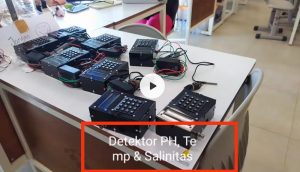 Dalam kesempatan tersebut, ia perkenalkan dengan alat Modul Quality Meter yang merupakan rangkaian modul yang berfungsi untuk mengukur standar ph air, temperatur dan salinitas air agar bandeng/windu/vaname/lainnya pertumbuhannya baik dan tidak mengalami stres ketika kondisi tidak normal. Alat ini memuat tampilan digital kondisi ph, temp dan salinitas air dan standar kualitas yang baik.