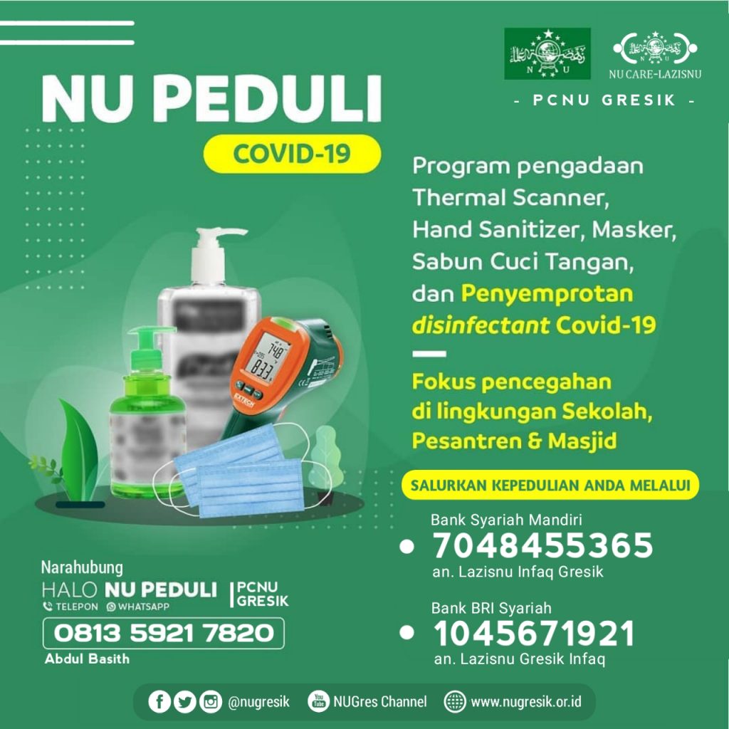 GRESIK | NUGres – Pengurus Cabang Nahdlatul Ulama (PCNU) Gresik bergerak cepat. Ormas besutan KH Hasyim Asy’ari membentuk posko antisipasi virus korona, Satgas NU Peduli Covid-19.