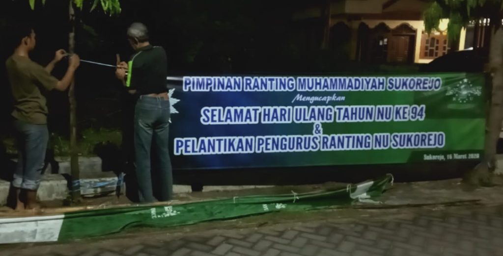 SIDAYU | NUGres – Saat di tempat lain terjadi perselisihan antara dua organisasi masyarakat Islam, lain halnya di Gresik. Dalam kegiatan peringatan Harlah NU ke-97 dan pelantikan pengurus NU Ranting dan Banom NU Desa Sukorejo Kecamatan Sidayu justru tampak spanduk ucapan selamat dari pengurus Muhammadiyah terbentang di lokasi acara. (16/3).