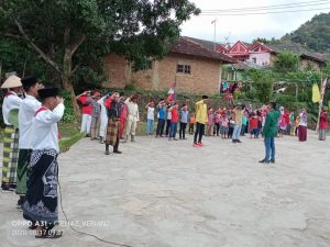 BAWEAN |NUGres – Suasana upacara di Dusun Betton, Desa Gunung Teguh berbeda dengan upacara pada umumnya. Uniknya para pemuda dan masyarakat memakai pakaian tradisional Bawean saat prosesi upacara.