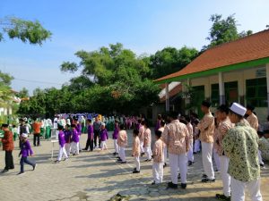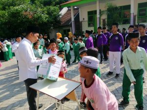 DRIYOREJO | NUGres_Semangat urunan untuk Muktamar NU ke-94 dirasakan para santri Ponpes Alfurqon Wedoroanom, Driyorejo, Gresik. Ratusan santri dan guru pun berebut memasukkan uang ke Kotak Infak (KOIN).