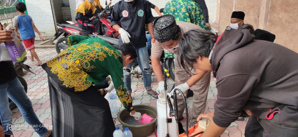 CERME | NUGres – Puluhan generasi muda NU dari unsur IPNU IPPNU dan Ansor serta Pengurus MWC NU Cerme melalui tim satuan tugas lakukan penyemprotan disinfektan ke desa-desa.